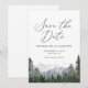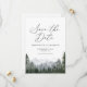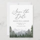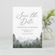 Convide amigos e família para marcar seus calendários em antecipação à sua cerimônia de casamento com esta elegante salva a data, com montanhas de aquarelas e pinheiros.