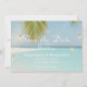 Vista divina de um paraíso de praia tropical com o mar turquesa e as frentes de palmeiras torcendo sobre a impressionante areia branca. Uma cena de sonho primitiva em seu casamento Salve a Carta de Data. Fácil de personalizar todos os detalhes de texto na popular tipografia de fontes - com imagens de flop de sacudir no lado inverso que podem ser excluídas, se preferir. Cartão de anúncio ideal para um próximo casamento de praia ou de férias.