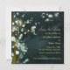Árvores brancas, brilhantes e um fundo rústico em verde escuro ilustrado no casamento personalizado Salve os Convites de Data. Um papel de carta de casamento único e bonito, que os seus convidados adorarão! Todo o texto de amostra pode ser totalmente personalizado com sua própria redação. ((Você pode encontrar os essenciais de casamento e favores nesta loja, Bridal Heaven. Entre em contato com ujean4791@gmail.com para obter trabalho personalizado e/ou coordenar papelaria de casamento.)