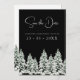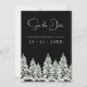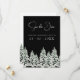 Árvores de Natal Negra de inverno Casando Salvem os Cartões de Data. Entra numa terra maravilhosa de inverno com o nosso encantador casamento entre o Black e o Pine Brancos de Inverno Negro e Neve Branca. Imaginem a magia de uma paisagem nevada, onde pinheiros majestosos ficam altos em sua elegante simplicidade, criando um cenário rústico e eterno para seu dia especial. A paleta preta e branca exude um charme clássico, capturando a essência do inverno enquanto adiciona um toque de sofisticação. Celebre seu amor num cenário festivo que lembra um Natal em floresta, onde cada detalhe sussurra o romance da época.