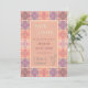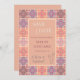 Cartões salva-vidas para um casamento com um padrão de azulejo em tons de laranja, rosa, damasco, areia e pêssego suaves.