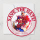 O Casamento De Beisebol Pensava Salvar as Datas, Cartões salve a data Modelo 100-Round. O lado frontal da placa é uma inserção/quadro de fotos. Remova minha foto e substitua-a pela sua. Anéis vermelhos, internos e externos, com uma foto personalizada no centro. O texto em vidro vermelho decorativo circula ao redor do topo e diz: SALVE A DATA. Na parte inferior está uma área de texto para você PERSONALIZAR. Preencha com a data apropriada, noiva e nomes de noivas, etc. Se não quiser que o texto seja apagado/limpo do modelo. O fundo externo da jante é vermelho e listras brancas de beisebol. Na parte traseira da placa, você tem o mesmo texto em cima e em baixo em um plano de fundo listrado. Pequenos embelezamentos cardíacos sentam-se entre as palavras. O fundo central é branco sólido com bolas de baseball espalhadas por toda parte. O texto decorativo e cursivo diz: Ele e HER (seus nomes) estão se elevando ao prato de casa e batendo 1000 que seu amor durará para sempre. As equipes se fundirão em uma...Os convites temáticos do casamento de baseball estão disponíveis em vários padrões. Estes convites incluem também os envelopes.