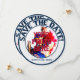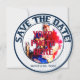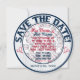 Casamento com beisebol, Cartões salve a data da Ronda. O lado frontal da placa é uma inserção/quadro de fotos. Anéis azuis, internos e externos, com uma foto personalizada no centro. Remova minha inserção fotográfica e substitua por uma foto sua. O texto do vidro azul decorativo circula em volta do topo e diz: SALVE A DATA. Outra área de texto está no fim para você personalizar. Edite a data, escreva o seu nome, etc. Eliminar/limpar o texto se não o quiser. Este texto está em ambos os lados do cartão. O fundo externo da jante é listras de baseball azuis e brancas. Na parte traseira da placa, você tem o mesmo texto em cima e em baixo em um plano de fundo listrado. Pequenos embelezamentos vermelhos sentam-se entre as palavras. O fundo central é branco sólido com bolas de baseball espalhadas por toda parte. O texto decorativo do vidro diz: Ele e HER (seus nomes) estão se preparando para a placa e batendo 1000 que seu amor durará para sempre. As equipes se fundirão em uma...Os convites temáticos do casamento de baseball estão disponíveis em vários padrões. Estes convites incluem também os envelopes.