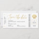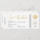 Seashell em folha de ouro falso em um estilo moderno e minimalista de passagem de embarque de avião, salve o cartão de data para um casamento na praia ou recepção do tema oceânico, com toneladas de espaço para informações de viagem de convidado e detalhes de acomodação no verso. É importante enviar informações de viagem cedo para casamentos de destino para que seus convidados tenham tempo para planejar a viagem. Esta passagem aérea salva a data é perfeita para um casamento formal chic ou casual no lado do oceano com um esquema de cor de ouro, e a impressão parece muito com folha de papel real mesmo sendo impressa em tinta regular, fazer mais barato especialmente para casamentos menores e micro. Clique em 'personalizar mais' para editar qualquer parte do design e torná-lo seu próprio, ou consulte o Compro Zazzle Destinos de Fita de Papel para MUITOS cartões salve a data de viagem e praia.