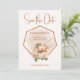 Mande este vovô elegante guardar o cartão para os seus convidados para partilhar o seu dia especial consigo. Apresentando orquídeas brancas e cor-de-rosa, eucalipto verde e folhas secas em molho ouro castanho. Linda tipografia de script. Personalize a design com seu nome noivo, data e local de casamento.