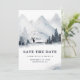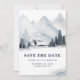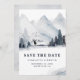 Anuncie sua casamento no inverno com esses cartões salve a data elegantes de férias com uma montanha de neve.