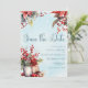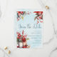 Design de aquarela de inverno confortável, com um moderno guião manuscrito, buquê de morango e galhos de árvores verdes sobre fundo de neve. Este belo convite define uma cena perfeitamente hiper. O texto pode ser facilmente personalizado para um único design para o seu dia especial.
