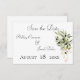 Este casamento Salvar o cartão de data faz parte do Buquê de lançamento do Olive Branch Invitation Suite de cartas criadas pela imprensa "Simply Farmhouse". As fitas cor-de-rosa suave coletam ramos de oliveiras, e enviam uma mensagem de calor e de lar nesta design rústica.