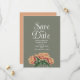 Anuncie o seu casamento com estas cartões salve a data! Eles apresentam um elegante design de cacto de pera picante, elegante e florescente, em lindas tonalidades de sábio, rosa e esticado.