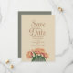 Anuncie o seu casamento com estas cartões salve a data! Eles apresentam um elegante design de cacto de pera picante, elegante e florescente, em lindas tonalidades de sábio, rosa e esticado.