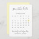 Moderno salve o cartão de data com um calendário simples em cinzas suaves com as palavras "Salvar a Data" e seus nomes em uma letra elegante e um coração amarelo pastel ao redor da sua data, sobre um fundo branco. A parte de trás é uma sombra de amarelo. DESIGN DICA: para uma coluna que não tem uma data na primeira linha (semana), adicione um espaço antes do primeiro número. Se precisar de assistência para personalizar o calendário, por favor sinta-se à vontade para me contactar através do botão "contato".