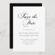 Casamento Elegante da Caligrafia Salve a Data. Em preto e branco eterno este design apresenta uma bela tipografia em preto e cinza em branco. Personalize com o nome da noiva e do noivo e as informações do casamento. O verso é mostrado em preto, mas pode ser qualquer cor. Visite nossa loja, Austen & Grace, para ver a suíte de casamento de cheio, produtos correspondentes e muito mais, e entre em contato conosco se você precisar de produtos adicionais de correspondência ou qualquer assistência: contact@austenandgrace.com