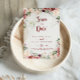 Este casamento floral de caligrafia no verão, salvo a data, é perfeito para um casamento simples. A design apresenta flores de aquarela, cor-de-rosa e borbulhante, com folhas verdes em fundo castanho manchado.
