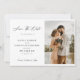 Um simples casamento de na moda com script de caligrafia minimalista moderno e manuscrito, salve o cartão de data personalizado com sua foto de noivado. Adequado para qualquer tema de casamento, primavera, verão, outono e inverno.
