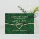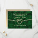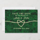 Coração simples, elegante, de folha de ouro em combinação com fundo verde boho abstrato emerald. Casamento de caligrafia moderna, adorável e minimalista, Salve o Convite de Data.