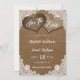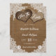 Complemente seu país rústico ou festa de casamento de celeiro com este romântico e fácil de personalizar casamento rústico, exceto a data que contém dois corações de burlap em um fundo hessiano decorado com rendas florais brancas.