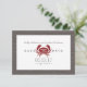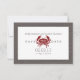 Um casamento de praia rusticado, exceto a data que apresenta uma ilustração de um caranguejo na frente e uma fronteira russa de madeira com os curtumes.