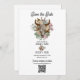 Um design moderno estilo de vaqueiro ocidental, com elementos de Boho Floral Cow Skull e Horsferes. Design de casamento floral Neutral Boho, com flores a aquarela entrelaçadas no crânio e ferraduras de vaca. Esta moderna design de casamento do país ocidental é ideal para todas as estações. Um design de rancho elegante, fazenda ou estilo celeiro com rosas de aparência boêmica neutra e suas ilustrações de aquarela verde. Um cowboy do país ocidental temeu casamento Salve a design do cartão com elementos elegantes modernos. Os convites de casamento e outros artigos de papelaria também estão disponíveis.