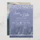 A foto do casamento no inverno salva o cartão de data. Perfeito para uma simples cinza azul e um casamento de neve branco no inverno. Edite esta opção para salvar o cartão de data com seus próprios nomes e data de casamento em um lado e sua própria foto no sentido inverso. Outros itens correspondentes e opções de cor estão disponíveis. Pinheiros de inverno pintados à mão no lago por Sarah Trett para www.mylittleedenweddings.com