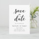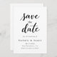 Este elegante cartão de salvamento de casamento preto-e-branco é perfeito para um casamento moderno. O simples design apresenta uma caligrafia preta elegante sobre um fundo branco limpo. O cartão também inclui um código QR para o site de casamento no verso.