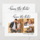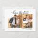 O Casamento de Colagem de 3 Fotos Minimalista do Script de Caligrafia Elegante Moderno Salva as Cartões de Data em Preto e Branco. Essa design meticulosamente trabalhada é talhada para casamentos modernos, emanando uma encantadora alegria romântica. Com sua graciosa colagem em grade de 3 fotos e captivando a letra de cauda do swash com letra manuscrita, estas placas encapsulam elegância contemporânea. Personalize cada cartão sem esforço com seus preciosos detalhes e fotos de casamento, oferecendo uma maneira refinada e sofisticada de anunciar e celebrar seu dia extraordinário.