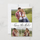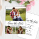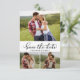 Casamento de Colagem de Fotos com Script 3 de Caligrafia Elegante Minimalista Salva as Cartões de Data em Preto e Branco. Este delicado design é curado especificamente para casamentos modernos, irradiando um encantador apelo romântico. Com a sua graciosa colagem de três quadrículas fotográficas e a charmosa fonte de rabo de pântano com letras manuais, estas cartas incorporam elegância contemporânea. Personalize facilmente estas cartas com os seus preciosos detalhes e fotografias de casamento, uma forma refinada de anunciar e celebrar o seu dia especial.
