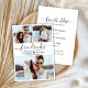 Modern Boho Funny Free Drinks Script black and white 3 photocolage casamento salve o cartão de data de lançamento. O design minimalista divertido apresenta três (3) colagens de fotos do casal e o elegante texto cursivo escrito manualmente com letra de tipografia "Bebidas Grátis" e entre o nome do casal um filme cardíaco de amor a preto em cor branca de fundo. Se precisar de ajuda ou itens correspondentes, entre em contato com o designer.
