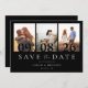 Crie o seu próprio casamento guarde os cartões de data com 3 das suas fotos favoritas. Design de tipografia ousada moderna com uma simples colagem de 3 fotos.