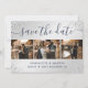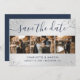 Elegante foto de casamento azul e prata do marinho salva o cartão de data com uma fonte moderna e um confete prateado. Itens correspondentes disponíveis.