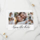 Casamento de Colagem de Fotografias Elegante 5 Minimalista Salve os Cartões de Data, exibindo um roteiro de caligrafia em moda e um sofisticado em preto e branco clássico. Essa coleção é projetada especificamente para casamentos modernos, exuando um fascínio encantador e romântico. Com uma colagem de 5 fontes de grade de fotos bem arrumada e cativando a letra da cauda do swash com letras manuais, essas cartas capturam a essência da elegância contemporânea. Personalize facilmente cada cartão para refletir seu estilo único, incorporando detalhes e fotos de casamento queridos, oferecendo um meio refinado e sofisticado para anunciar e celebrar seu dia extraordinário.