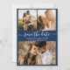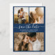 Marinho moderno elegante e casamento de colagem de fotos com script branco 3 salve o cartão de anúncio de data. O modelo de design minimalista de chic apresenta três (3) colagens de fotos do casal e elegante script cursivo de tipografia manual "Salvar a Data" em branco na cor azul do marinho. Se precisar de ajuda ou itens correspondentes, entre em contato comigo.