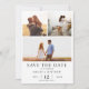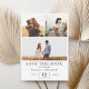 Crie o seu próprio casamento guarde os cartões de data com 3 das suas fotos favoritas. Design de tipografia moderna com uma simples colagem de 3 fotos.