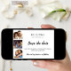A Guardar o cartão de data para o seu casamento. O texto: Salvar a Data é gravado com um script de estilo com letra de tendência grande. Personalize e adicione 3 fotos. Você pode adicionar seu esquema de cores de festa na ferramenta design.