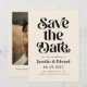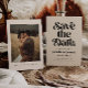 Retro e elegante salve o cartão de data com fonte boho que diz "salve a data" em branco em um fundo branco creme. Você pode adicionar uma foto atrás.