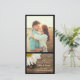 Prepare um humor relaxado e rústico para seus próximos núpcias com a charmosa margarida branca e casamento de madeira de celeiro Salve o Cartão com fotos da Data. Este casamento casual, porém clássico, do estilo fazendeiro ocidental mantém o cartões de fotos de data com uma fotografia floral fina de uma flor margarida branca com madeira de celeiro de castanho e cascas e uma cabeça de prego enferrujada. Personalize-o com os nomes do casal, data do casamento e foto.