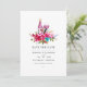 Convite de casamento em aquarela floral rosa e azul turquesa boho chic para salvar a data, projetado para ser rápida e facilmente personalizável para os detalhes do seu evento.