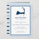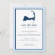 Casamento Salve a data para o seu casamento com o Cabo Cod. Mapa de Cabo Cod com um coração cor-de-rosa sobre Dennis Port, Massachusetts. CORES em Hydrangea Blue, Marinho, branco com um coração cor-de-rosa. O coração se for móvel se você precisar de um lugar diferente. Se você quiser alterações no design, envie um e-mail para paula@labellarue.com ANTES DE FAZER UM PEDIDO, para que um novo design possa ser criado para que você trabalhe.