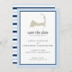 Casamento Salve a data para o seu casamento com o Cabo Cod. Mapa de Cabo Cod com um coração cor-de-rosa sobre Dennis Port, Massachusetts. CORES em Hydrangea Blue, Marinho, branco com um coração cor-de-rosa. O coração se for móvel se você precisar de um lugar diferente. Se você quiser alterações no design, envie um e-mail para paula@labellarue.com ANTES DE FAZER UM PEDIDO, para que um novo design possa ser criado para que você trabalhe.