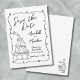Quadro giratório divertido à mão Salve a placa de data. Esta gravação criativa e caprichosa do cartão de data é perfeita para os casais que procuram estabelecer um tom lúdico e alegre para o seu próximo casamento. Projetado em preto e branco clássico, o cartão exibe uma estrutura giratória com detalhes cardíacos encantadores que rodeiam suas informações de casamento, apresentadas em uma mistura deliciosa de roteiro e fontes manuscritas para uma sensação casual, mas elegante. No canto inferior esquerdo, uma ilustração divertida de uma torre de vidro de champanhe com uma garrafa de champanhe a borbulhar sobre o topo adiciona um toque animado e comemorativo. Esse detalhe peculiar se encaixa perfeitamente com a estrutura giratória para criar um design único e memorável. O verso do cartão apresenta um sotaque doce, um monograma manuscrito das iniciais do casal acompanhado de um charmoso esboço de uma garrafa e vidro de champanhe, ligando o tema. Totalmente personalizável, este design é perfeito para casais que querem algo de moda, na moda e que explodem com personalidade. Disponível em uma versão impressa ou como um arquivo digital baixável para fácil compartilhamento ou impressão local.