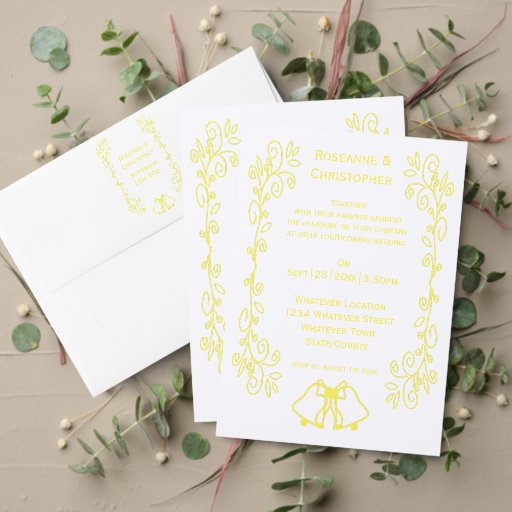 Salve a data do convite. design. Personalize este casamento amarelo salve o convite de data com os detalhes do seu casamento e depois envie-o para você ou faça o download instantâneo. Se precisar de ajuda para personalizar, entre em contato conosco através do link desta página. Sinos cor de limão Casamento personalizado design guarde o convite de data que pode ser impresso ou descarregado instantaneamente
