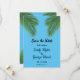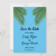 Este elegante casamento de praia, exceto o convite de data é perfeito para um casamento moderno de verão à beira-mar. A design romântica apresenta folhas verdes de palma com elegante tipografia negra sobre fundo lacrimogêneo.
