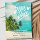 Casamento de design de praia de palmeira tropical... salve as datas para o casamento de praia. Personalize com seus nomes, data do casamento e local do casamento. Adicione sua foto ao fundo. Envie-as aos seus amigos e familiares para que saibam que salvam o seu encontro e façam as suas bolsas para o seu próximo casamento na praia de destino.