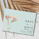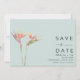 Pássaro dos cartões salve a data de design Paradisebol para o seu casamento na praia de destino. Personalize a frente com os detalhes do seu casamento e adicione uma foto ao fundo.