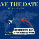 Casamento de mapa do mundo azul e amarelo salve o cartão de data para um casamento de destino. Personalize-o com suas informações de evento.