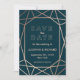 Um casamento no inverno moderno e contemporâneo "Save the Date" (Salvar a data) apresenta um padrão geométrico de rosa de ouro "faux foil" sobre um fundo de turquesa escuro. Todos os seus detalhes estão soletrados num belo magnífico erro tipográfico moderno. Eu ofereço um serviço de personalização gratuito, se você tiver algum pedido especial, envie-me um e-mail para: margherita@bluebirdinvites.com Correspondência com a postagem dos EUA está disponível aqui: http://www.zazzle.com/collections/geometric_winter_wedding_set-119231006408651896 Clicando no botão personalizar você pode acessar as ferramentas de edição e mudar a cor de fundo, digitar e muito mais Nota ______________________________________________________________________________________________________________________________________________________________________________________________________________________________________ A cor de cobre metálica não é uma folha de papel real, é apenas um efeito de cor _______________________________________________________________________________________