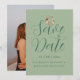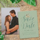 casamento fotográfico elegante moderno salve a data com o casamento do tema Whimsical Dinosaur "Salve a Data" sábio verde e verde escuro Cartão Engraçado T-Rex dinossauro Bride & Groom Announement Torne seu casamento realmente inesquecível com este cartão divertido "Salve a Data" com uma charmosa noiva T-Rex e noiva em estilo aquoso. Projetada para casais divertidos, esta carta única combina romance caprichoso com elegância moderna, combinando a ilustração adorável de dinossauro com a escrita elegante na moda verde-escuro e a tipografia moderna num fundo verde-sábio na moda para uma primeira impressão memorável. Personalize facilmente a sua fotografia com os seus nomes e a data do casamento usando as simples ferramentas de edição de Zazzle, criando um anúncio digno de manutenção que os seus convidados adorarão. Perfeito para amantes de dinossauros, casamentos temáticos Jurássicos, ou casais que querem adicionar uma reviravolta relâmpago à sua papelaria de casamento. Esta trabalho de arte original do T-Rex pela artista e designer Catherine Sweetman está disponível exclusivamente no Zazzle, fazer que você salve a data tão única quanto sua história de amor.