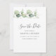 Casamento de Script Eucalyptus Greenery Salve o anúncio de Data que você pode personalizar facilmente clicando no botão "Personalizar" acima