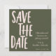 Defina o tom para o seu grande dia com este cartão russo e moderno Salve a data. Projetado com uma letra rosa escamoteada à mão contra um fundo verde-oliva rico, é perfeito para casais planejando uma celebração acolhedora, inspirada na natureza ou ao ar livre. Este design combina elegância casual com encanto orgânico, ideal para casamentos outono, vibrações boho ou locais de montanha. Personalize seus detalhes para dar aos convidados uma bela e memorável primeira impressão.