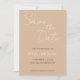 Convites de casamento de estilo simples que apresentam escrita estilizada preta em um fundo de cor bege da moda. Edite e substitua nomes, data e local com os seus. Selecione o tamanho do convite e o estilo de papel.