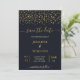 Casamento elegante e personalizado violeta/roxo salve os cartões de data com estrelas douradas confetti. Para mais personalização, clique no botão "Personalizar" e use nossa ferramenta de design para modificar este modelo.